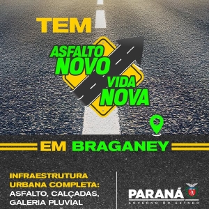 Tem vida nova aqui! A cidade está recebendo o maior programa de asfalto do Brasil. É pavimentação, calçadas, galeria pluvial e iluminação em LED. Um i